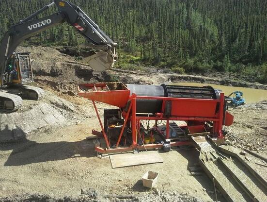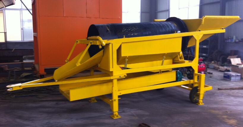 小型移動式淘金車又名移動式黃金選取設備,是一種主要用于砂金礦分選的機械設備,可移動的采金設備,可由人工上料或裝載機上料到達料倉,由滾筒篩或者絞桶進行物料的篩分。大顆粒廢料排出去,剩下的物料由選金溜槽進行黃金回收,再進入搖床精 選。
