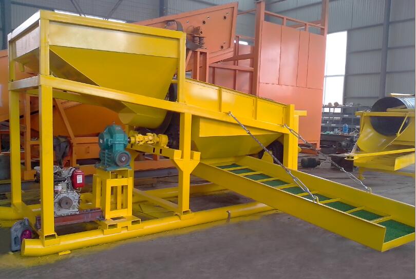 一種小型沙金機(jī)械 小型的沙金機(jī)械有移動式的,有滾筒式的,這種在沙金礦開采中移動比較方便,篩分、洗礦、黃金回收作用一個不少,只是產(chǎn)量稍微小了點。可以采用小型的工程機(jī)械來配合給料,采用小型的水泵來供水。這種設(shè)備生產(chǎn)成本低。