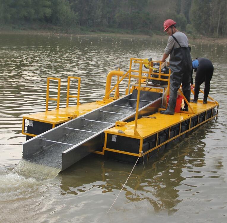 下面讓砂金機(jī)、選金機(jī)的生產(chǎn)廠家青州市魯晟沙礦機(jī)械有限公司給大家介紹一下它們的優(yōu)勢: 這種沙金機(jī)移動非常方便,可以應(yīng)用于多種的地形,無論地形是松軟的砂質(zhì)還是堅硬的巖石,又或是石頭較多的都可以應(yīng)用,并且一定也非常方便,可以滿足一邊開采一邊走的開發(fā)方式。這種對于大范圍的沙金礦區(qū)效果好,能節(jié)省多的生產(chǎn)成本,增加開采效率。 這種沙金機(jī)是一體式的,所有的組成都是一體式,水泵也被設(shè)計在了設(shè)備上,走到哪里就開采到哪里,現(xiàn)在非常流行。這種設(shè)備可以用柴油發(fā)電來帶動,并且可以采用多種工程機(jī)械上料。比如翻斗車、勾機(jī)、裝載機(jī)等。還可以用砂泵進(jìn)行上料。 蠕動溜槽
