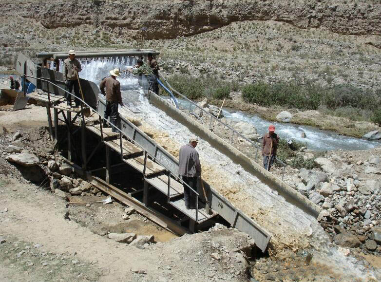 不受地形影響,移動性強。移動選金設備有很多種,有輪式的分為實心輪和輪胎的。還有履帶式的,跟坦克履帶一樣的。還有是雪橇式的,樣式跟滑雪的雪橇一個樣式。還有一種是管式的。這幾種底盤都是各有利弊的。要根據客戶礦區的實際情況來進行選型。這幾種都可以在一個地方開采完成后移動到下一個地方開采,大大節省了人力物力。節省了沙金礦的生產開采成本。