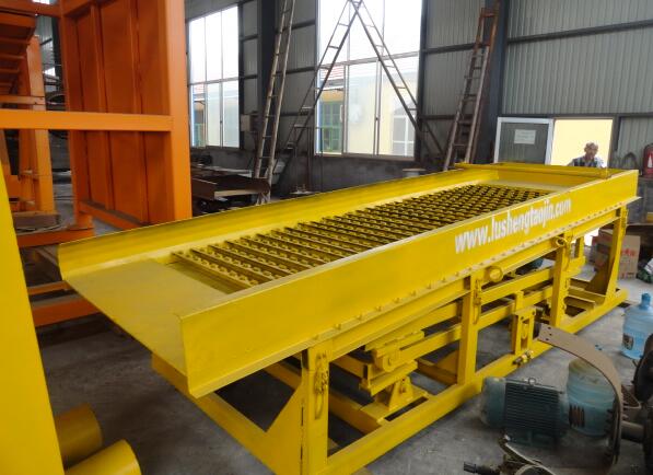 鼓動(dòng)溜槽的特點(diǎn):基本上保留了溜槽原有的特點(diǎn),而將原有的鐵制底板改為橡膠底板,再加上簡(jiǎn)單的偏心鼓動(dòng)機(jī)構(gòu),使橡膠底板做上、下往復(fù)運(yùn)動(dòng),每個(gè)溜格之間類似于跳汰機(jī)的隔膜作用。從而解決了溜格的板結(jié)現(xiàn)象,提高了金的回收率。由于鼓動(dòng)溜槽是間斷排出精礦,所以富集比要比跳汰機(jī)高幾十倍到幾百倍。